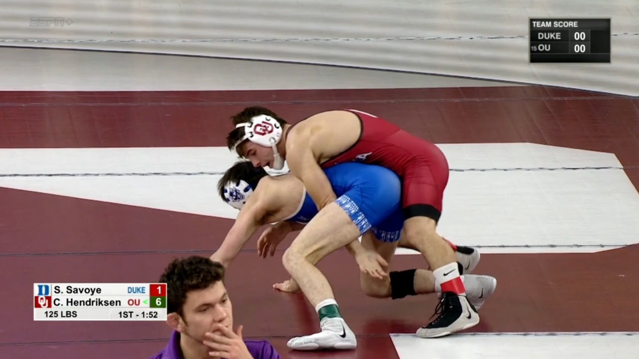 2025/26 Oklahoma vs Duke wrestling dual 125lbs #24 Conrad Hendriksen (OU) tech fall Spencer Von Savoye (DUKE) I do not own this video, all credit/rights to ESPN/Big 12