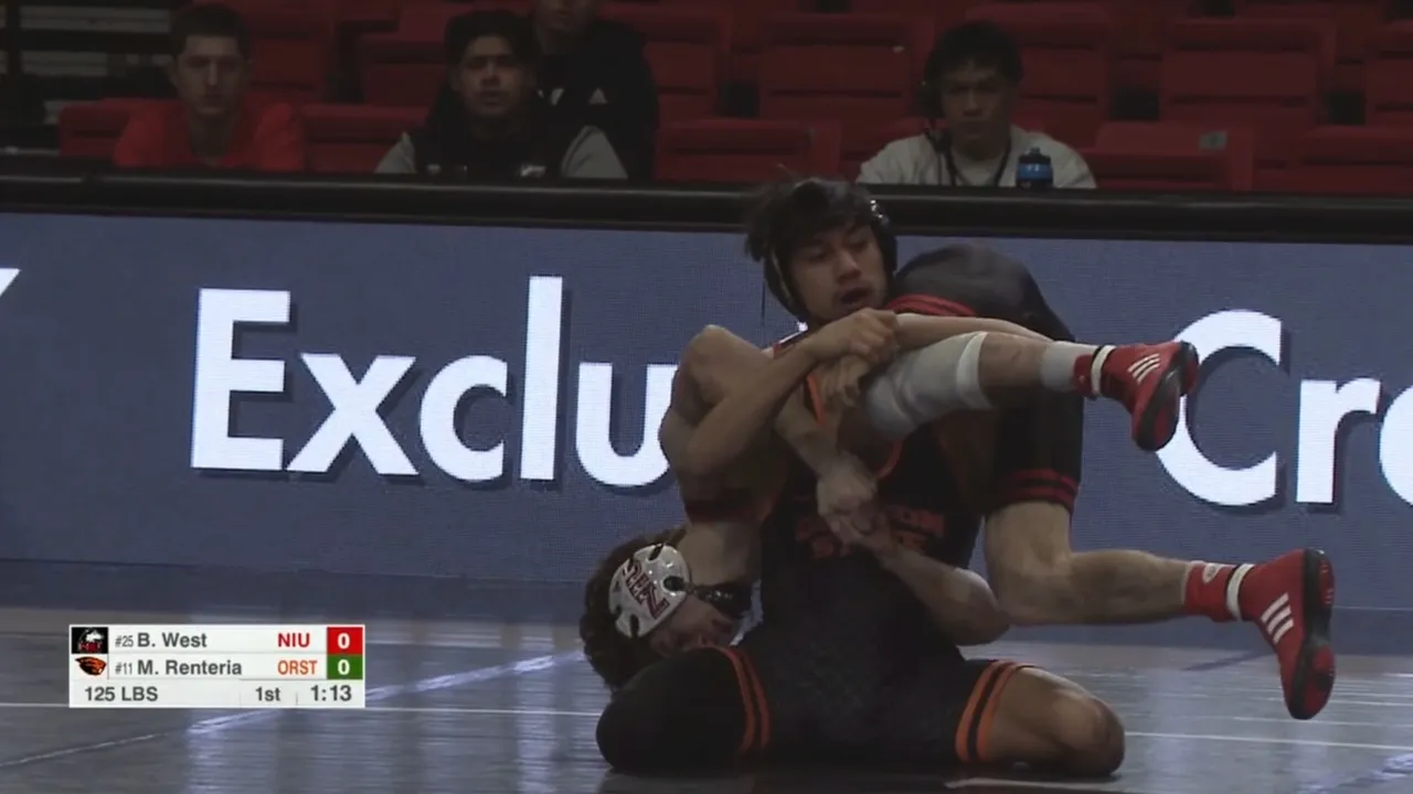 2025/26 Northern Illinois vs Oregon State wrestling dual 125lbs #11 Maximo Renteria (ORST) dec #25 Blake West (NIU) I do not own this video, all credit/rights to ESPN/MAC