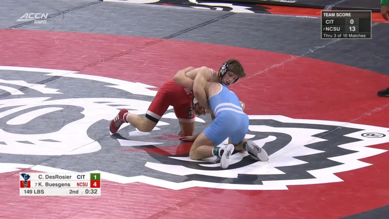 2025/26 NC State vs Citadel wrestling dual 149lbs #7 Koy Buesgens (NCST) dec Carson DesRosier (CIT) I do not own this video, all credit/rights to ESPN/ACC