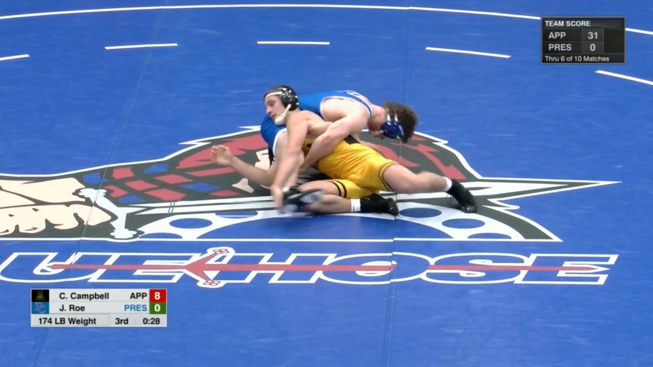 2025/26 Presbyterian vs App State wrestling dual 174lbs Colt Campbell (APP) maj dec Joshua Roe (PC) I do not own this video, all credit/rights to ESPN/SoCon