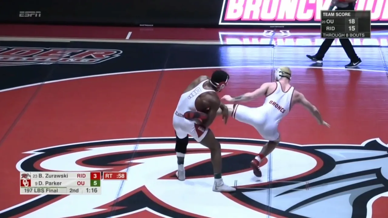 2025/26 Rider vs Oklahoma wrestling dual 197lbs #9 DJ Parker (OU) tech fall #23 Brock Zurawski (RID) I do not own this video, all credit/rights to ESPN/MAC