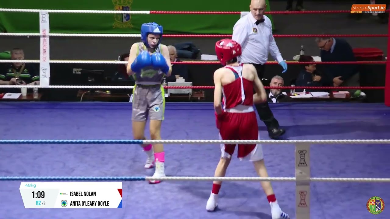 Isabel Nolan (Santry) and Anita O’Leary Doyle (Sacre Coeur) contested this 2024 National Senior Cadet Championship 48kg semi final, streamed by @streamsport-ie7508 #boxing #boxingireland #boxer #irishboxing #IABA #olympicsport #iaba #bout #fight #titleboxing #championshipboxing #boxingnews #fightnight