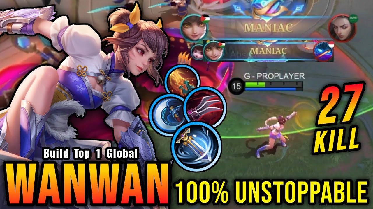 27 Kills + 2x MANIAC!! Wanwan Critical DMG Build 100% Unstoppable - Build Top 1 Global Wanwan ~ MLBB