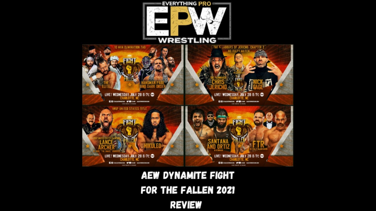 #AEW #AEWDynamite #FightForTheFallen Welcome to Everything Pro Wrestling. Everything Pro Wrestling is a show by the fans for the fans. ELIMINATION MATCH "If Page and Dark Order win, they will receive a future match for Omega's AEW World Championship and Young Bucks' AEW World Tag Team Championship" The Elite (Kenny Omega, The Good Brothers (Doc Gallows & Karl Anderson) & The Young Bucks (Matt & Nick Jackson)) vs. Adam Page & The Dark Order (Evil Uno, Stu Grayson, John Silver & Alex Reynolds) "The 5 Labours of Jericho: Chapter 2" NO RULES MATCH Chris Jericho vs. Nick Gage IWGP UNITED STATES HEAVYWEIGHT CHAMPIONSHIP Lance Archer (c) vs. Hikuleo Proud 'N Powerful (Santana & Ortiz) vs. FTR (Cash Wheeler & Dax Harwood) Christian Cage & Jurassic Express (Luchasaurus & Jungle Boy) vs. The Hardy Family Office (Private Party (Isiah Kassidy & Marq Quen) & Angélico) Source: * WE HAVE SOME GREAT MERCH ON TEE PUBLIC 👕 * 💈MANSCAPED ✂ Get 20% Off and Free Shipping with the code "EPWSHOW" at Go to🤼♂️🤼♀️ Powerslam.TV Use coupon code “EPWSHOW” to get a free month when they subscribe. Follow all of our social media, podcasts, and merch accounts for the latest in pro wrestling. 🔗
