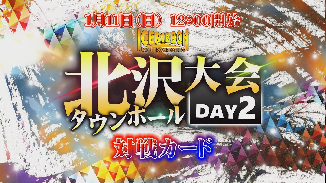 2026年1月11日(12時試合開始)「アイスリボン北沢タウンホール大会~DAY 2~」全対戦カード ◆第1試合 タッグマッチ 20分1本勝負 ミス・モンゴル&緋彩ませ vs トトロさつき&緋彩もえ ◆第2試合 シングルマッチ15分1本勝負 Lil Marz vs りこ ◆第3試合 タッグマッチ 20分1本勝負 海乃月雫&キク vs しのせ愛梨紗&若菜きらり ◆第4試合 シングルマッチ 15分1本勝負 Yappy vs ビッグ春華 ◆第5試合 タッグマッチ 20分1本勝負 神姫楽ミサ&藤田あかね vs 真琴&柳川澄樺 ◆第6試合 ICEx∞選手権試合 30分1本勝負 [王者]松下楓歩 vs 勝愛実[挑戦者] 【チケット料金】 VIP席:8,000円(特典付) 最前列:7,000円 特別RS席:6,000円 指定席A:5,000円 指定席B:4,000円 ※当日券500円UP ※特典は当日会場にてお渡しとなります。 【割引チケット】 リボン直販のみでの取り扱いとなります。 ※座席指定不可となります。 ■学割:2,000円 当日、受付にて学生証をご提示ください。 ■ペア割:8,000円(連番で2席ご用意) 【チケット取り扱い】 ・アイスリボン大会売店 ・チケットぴあ ・リボン直販(ネット予約)→https://iceribbon.com/ticket_detail.php?i=1355 ■ICERIBBON LIVE(生配信) https://iceribbonlive.ctpfs.jp/store ◆チケット:3,500円 ※夜のhotシュシュ北沢大会、1/10の北沢大会DAY1も含め3大会のお得な組み合わせ視聴チケット有。その他特典付きサポートチケット有 #プロレス #iceribbon #hotシュシュ #JTO #飛鳥プロレス #ミス・モンゴル #緋彩ませ #トトロさつき #緋彩もえ #Lil _Marz #りこ #海乃月雫 #キク #しのせ愛梨紗 #若菜きらり #Yappy #ビッグ春華 #神姫楽ミサ #藤田あかね #真琴 #柳川澄樺 #松下楓歩 #勝愛実