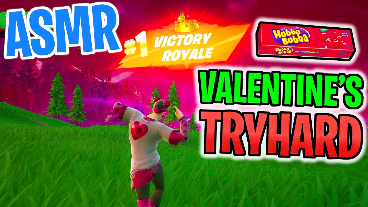 ASMR Gaming 😴 Fortnite Valentine's Day Win! Relaxing Gum Chewing 🎮🎧 Controller Sounds + Whispering 💤