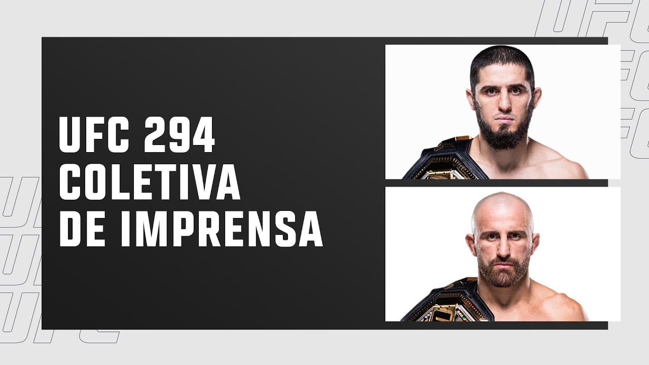 Assista ao vivo à coletiva de imprensa com Dana White e as principais estrelas do #UFC294: o campeão peso-leve Islam Makhachev, o campeão peso-pena Alexander Volkanovski, Kamaru Usman e Khamzat Chimaev. O UFC 294 acontece neste sábado, 21 de outubro, com transmissão exclusiva do #UFCFightPass a partir das 11 horas da manhã (horário de Brasília). Assine já: https://ufc.ac/3DH1tow Se inscreva para ter todo o conteúdo mais recente do UFC Brasil: https://ufc.ac/3ofRm20 Conecte-se com o UFC em todas as plataformas: 🔴 Website: http://www.ufc.com.br 🔵 Twitter: https://twitter.com/UFCBrasil 🔵 Facebook: https://www.facebook.com/UFCBrasil 🔴 Instagram: https://www.instagram.com/ufc_brasil/ ⚫️ TikTok: https://www.tiktok.com/@ufcbrasil 🟣 Twitch: https://www.twitch.tv/ufc Cadastre-se para receber notícias e conteúdo exclusivo do UFC no seu email: https://www.ufc.com.br/newsletter
