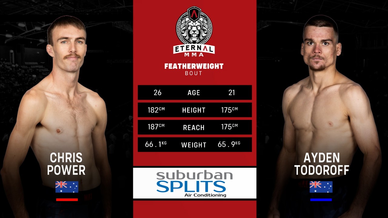 🔥 Welcome to Eternal MMA 104! 🔥 Watch as Chris Power takes on Ayden Todoroff in a thrilling matchup that showcases the best of Australian mixed martial arts! Eternal MMA is proud to be Australia and New Zealand's premier MMA promotion, bringing you the most electrifying fights from across the region. 🌟 About Eternal MMA: Based on Queensland's Gold Coast, we promote up to 12 events per year, featuring a talent pool filled with the finest MMA athletes, from rising amateurs to seasoned pros. Our events are known for their intensity, with undercards showcasing top amateur fighters from the Australia-Pacific region, and main cards packed with professional athletes in the most competitive bouts. 💥 Why You Should Watch: * Experience the excitement of live MMA action. * Discover the future stars of the sport. * Enjoy exclusive highlights, KO's, TKO's, and submission victories! 👉 Don't forget to subscribe to the Eternal MMA YouTube channel for all the latest fights and highlights, including full fight recaps, behind-the-scenes content, and more! Follow Us: * Facebook: Eternal MMA * Instagram: @EternalMMA * TikTok: @eternalmma * OnlyFans: Eternal MMA * Threads: @eternalmma 🌐 For more information, visit www.eternalmma.com. Join the conversation using hashtags: #EternalMMA #MMA #FightNight #AustralianMMA #FullFight #UFC #UFCFightPass