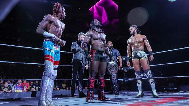 NXT Champion Oba Femi, Trick Williams and Je'Von Evans engage in a hectic Triple Threat Match at NXT Stand & Deliver 2025.