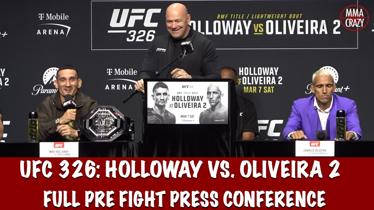 Full UFC 326 Pre Fight Press Conference with Max Holloway, Charles Oliveira, Caio Borralho, Reiner de Ridder, Rob Font, Raul Rosas Jr., Drew Dober, Michael Johnson, Gregory Rodriguez, Brunno Ferreira, Twitter: http://www.twitter.com/MMACrazy Instagram: http://www.Instagram.com/MMA_Crazy Click on the link below to subscribe http://www.youtube.com/user/mmacrazytv?sub_confirmation=1