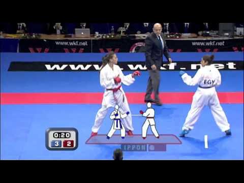Subscribe to WKFKarateWorldChamps! http://bit.ly/N7c4H0 Blog: http://wkfkarateworldchamps.com/ History of Karate. Heba Abdelrahman of Egypt vs Hafsa Seyda of Turkey. Female Kumite Bronze Medal -68kg. WKF World Karate Championships Belgrade 2010.