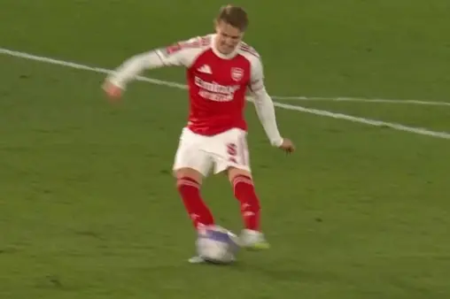 [Highlights] Odegaard curls a shot in the box, but no threat due to angle