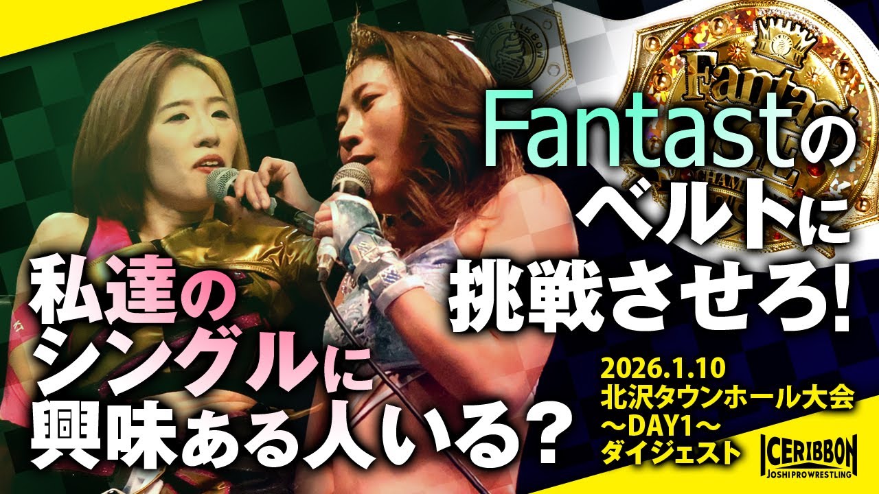 2026年1月10日に北沢タウンホールで行われた「アイスリボン北沢タウンホール大会~DAY 1~」の大会ダイジェスト。 大晦日に緋彩ませのベルト獲りのアシストを約束しながら、裏切ってトライアングル王座を強奪した米山香織。その2人が米山はちこと、ませは実姉の緋彩もえとのタッグで対戦。 オーストラリアから再来日のLil Marzは、Yappyと初シングルマッチ。 神姫楽ミサとしのせ愛梨紗の“ちあぷり”の対戦相手は、藤田あかねと台湾パズルプロレスのプリンセス・ピスタチオ。 真琴とトトロさつきは1年ぶりのシングル対決。 大晦日に共に初のベルト戴冠となった松下楓歩と海乃月雫がタッグ。対戦相手は柳川澄樺と若菜きらり。 ■ICERIBBON LIVE(全試合配信) https://iceribbonlive.ctpfs.jp/store ◆チケット:3,500円 ※販売及びアーカイブ視聴期限:1月20日まで 大会試合結果 https://iceribbon.com/event_detail.php?id=3973 アイスリボンの直近大会スケジュール http://iceribbon.com/calender.php #プロレス #iceribbon #hotシュシュ #ゴキゲンプロレス #飛鳥プロレス #パズルプロレス #米山香織 #りこ #緋彩ませ #緋彩もえ #Yappy #LIl_Marz #神姫楽ミサ #しのせ愛梨紗 #藤田あかね #プリンセス・ピスタチオ #真琴 #トトロさつき #松下楓歩 #海乃月雫 #柳川澄樺 #若菜きらり