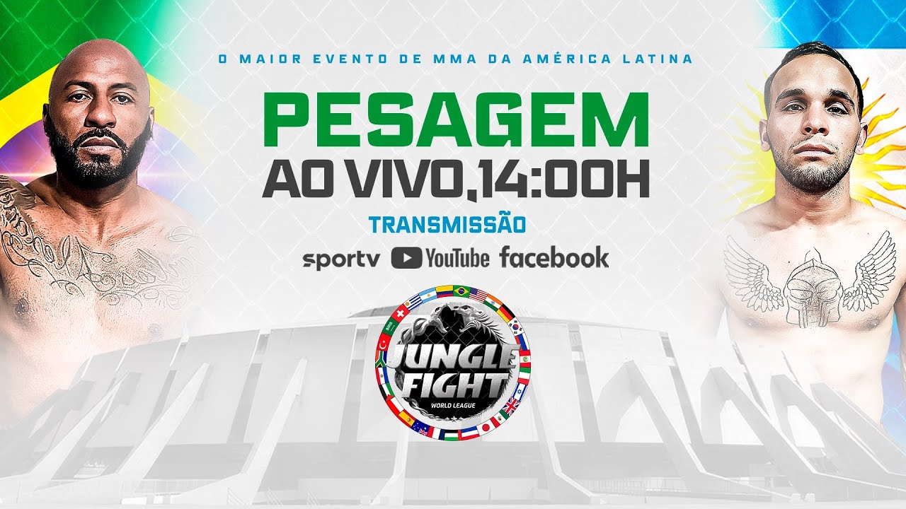 Já entrando no clima do JUNGLE FIGHT 134, você acompanha ao vivo com a gente a pesagem cerimonial do evento! Vem conferir se todos os lutadores bateram o peso e também as intensas encaradas pré-luta! ================================== CANAIS 👉Participe do nosso canal no WhatsApp e receba conteúdos exclusivos: https://whatsapp.com/channel/0029Va9eCiU9MF92GEFqnW0t 👉Seja membro do nosso canal e tenha acesso a benefícios em nossa comunidade: https://www.youtube.com/channel/UC5M5y5qpJRvaLnAIRVzGqoA/join 👉Se inscreva em nosso canal e ative as notificações: https://www.youtube.com/@Junglefcoficial ================================== PLAYLISTS ✅Assista todos os eventos na íntegra: https://youtube.com/playlist?list=PLW3j7sv_VkeFcXSaAXTeJMnca4xXzs_9X&si=cyQnG0vAOxke9Kfi ✅Fique ligado em nossos Podcasts Semanal: https://youtube.com/playlist?list=PLW3j7sv_VkeEfE3yn41YjPKQEAaK8cgZV&si=NfenaCMPZvYbv0C3 ✅Vida de Guerreiro - O documentário sobre os Guerreiros da Selva: https://youtube.com/playlist?list=PLW3j7sv_VkeHoMJx8cilQurgjIC0mGaiK&si=Cr0Prl3H7w48APeb #JungleFight #MMA #JungleFightNoCombate #JungleFightNaGlobo