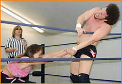 The site debut of the very big and confident Bad Seed. Mercedes loves a challenge and doesn't shrink away from locking up with him and you can tell it's going to be a hard-fought match. Good high impact action with both suffering setbacks and inflicting punishment. When Bad Seed gets Mercedes off her game he's quick to capitalize. The Latina gets battered quite a bit but fights on and we're back to a give and take match. The ending comes up suddenly and you can count on a rematch in the near future.