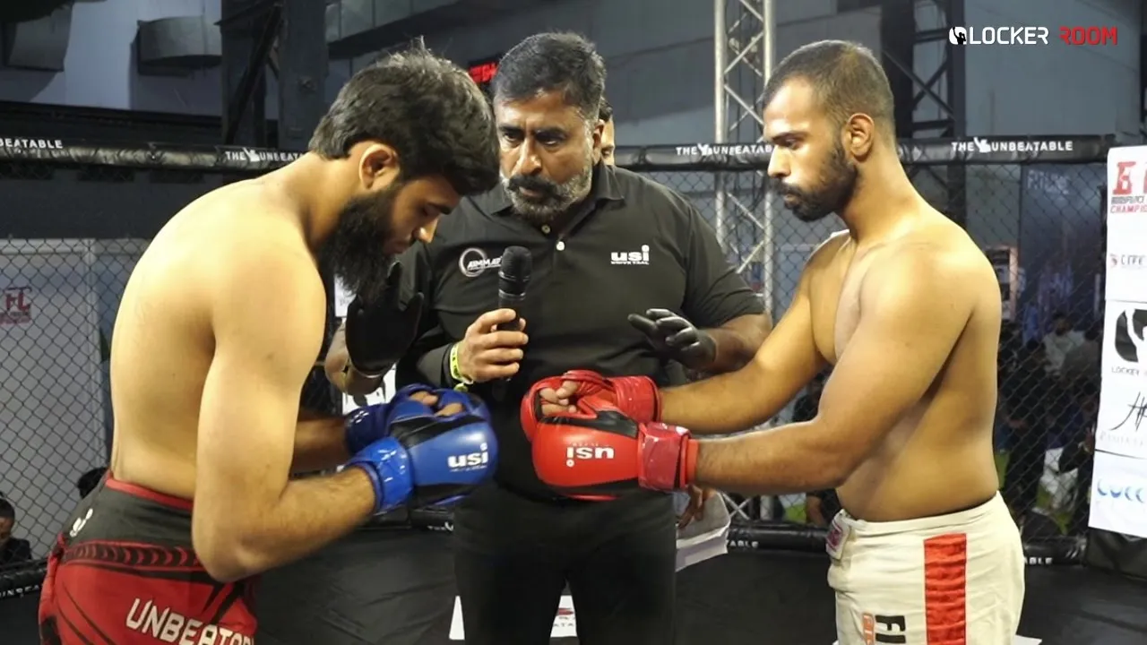 Here is the Amateur MMA Title fight which happened between Mohammed Jasir in the Red Corner and Abduraffea Maknojia in the Blue Corner at the Bodyforce Fighting Championship event held at the IHFF Event in Mumbai. The event was sanctioned by the All India Mixed Martial Arts Federation (AIMMAF) and featured athletes from around the nation. #AIMMAF #MMA #India LockerRoom India, a vertical of LockerRoom Network is home to the first-ever mobile app from India which is dedicated to MMA and Combat Sports news. Download the LockerRoom App for all the latest MMA news: http://onelink.to/6gkfh8 ----------------------------------------------------- You can check us out on: ------------------------------------------------------- Website: https://lockerroom.in/ All our Social Media Pages: https://linktr.ee/lockerroomindia Instagram (LockerRoom India) https://www.instagram.com/lockerroom_in Instagram (LockerRoom Boxing) https://www.instagram.com/boxinglockerroom/ Instagram (LockerRoom Fitness) https://www.instagram.com/fitnesslockerroom/ Twitter: https://twitter.com/lockerroom_in Facebook: https://www.facebook.com/lockeroom.in/ Follow us on Google News: https://news.google.com/publications/CAAqBwgKMNnsmwswnfezAw Telegram: LockerRoom India: https://t.me/lockerroomindia LockerRoom Fitness: https://t.me/lockerroomfitness LockerRoom Boxing: https://t.me/lockerroomboxing DISCLAIMER: Copyright Disclaimer under section 107 of the Copyright Act 1976, allowance is made for “fair use” for purposes such as criticism, comment, news reporting, teaching, scholarship, education, and research. Fair use is a use permitted by copyright statute that might otherwise be infringing.