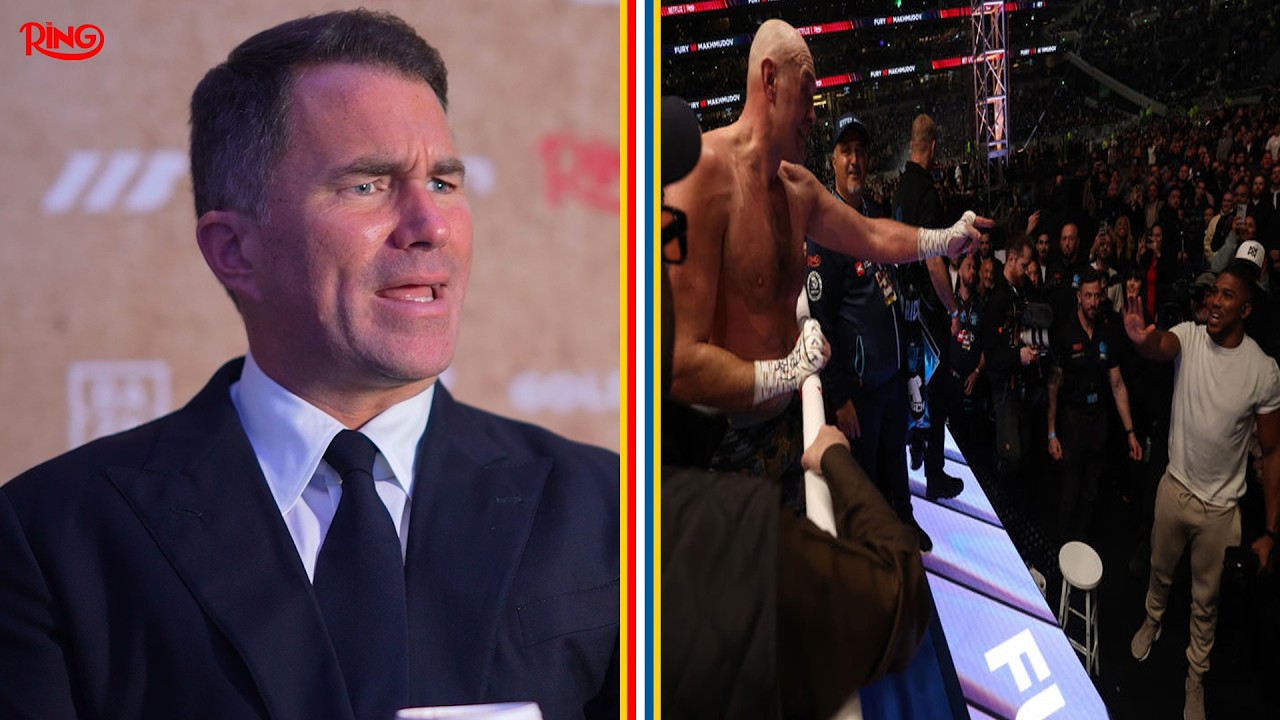Subscribe NOW at: https://bit.ly/m/TheRingMagazine Eddie Hearn spoke to The Ring at the Oleksandr Usyk vs Rico Verhoeven press conference, as well as going over numerous updates on the matchroom schedule talking about fights like Xander Zayas vs Jaron Ennis, Anthony Joshua vs Tyson Fury and other fights too. #EddieHearn #TysonFury #AnthonyJoshua 0:00 Intro 0:10 Opening Chat 1:15 Going to shows as a fan 2:00 Tyson Fury thoughts 3:45 Fury vs AJ 9:00 Usyk & AJ Training Camp 11:03 Usyk vs Verhoeven Talk 14:10 Giyasov vs Catterall 15:30 Boxing at Pyramids 16:20 Conor Benn thoughts 19:10 Kelly vs Fundora 20:22 Ford vs Foster, Mason vs Cordina 22:07 Boots vs Zayas 23:55 Ending Find More On Our Socials: Instagram: https://www.instagram.com/ringmagazine/?hl=en X: https://x.com/ringmagazine Facebook: https://www.facebook.com/RingMagazine/ TikTok: https://www.tiktok.com/@ringmagazine?lang=en