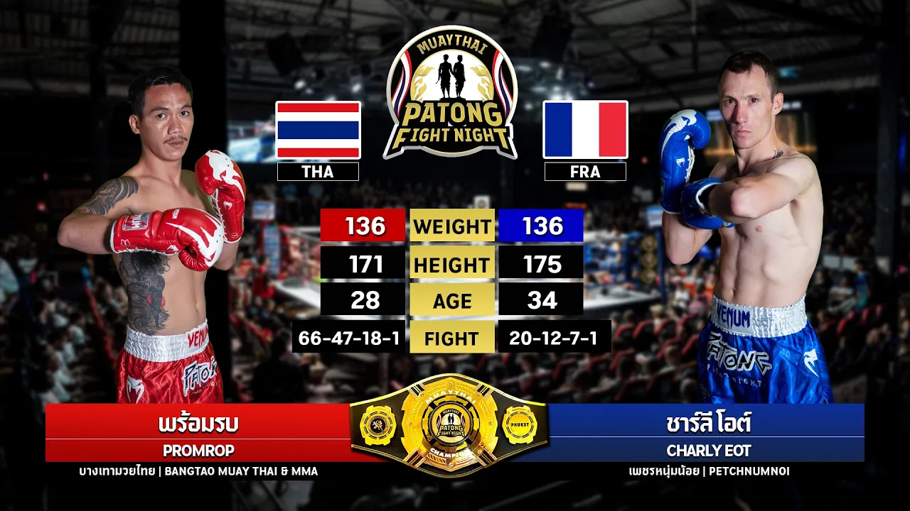 🔴 Promrob Bangtao Muay Thai & MMA 🇹🇭 🔵 Charly Eot Eakmuangnon 🇫🇷 Patong Fight Night 🥊 📅 Thursday, March 5, 2026 📍 Patong Boxing Stadium, Sainamyen Road, Kathu, Phuket, Thailand 📺 LIVE on YouTube: PetchnumnoiOfficial 👉 🎟 Ticket Booking WhatsApp +66 81 737 7193