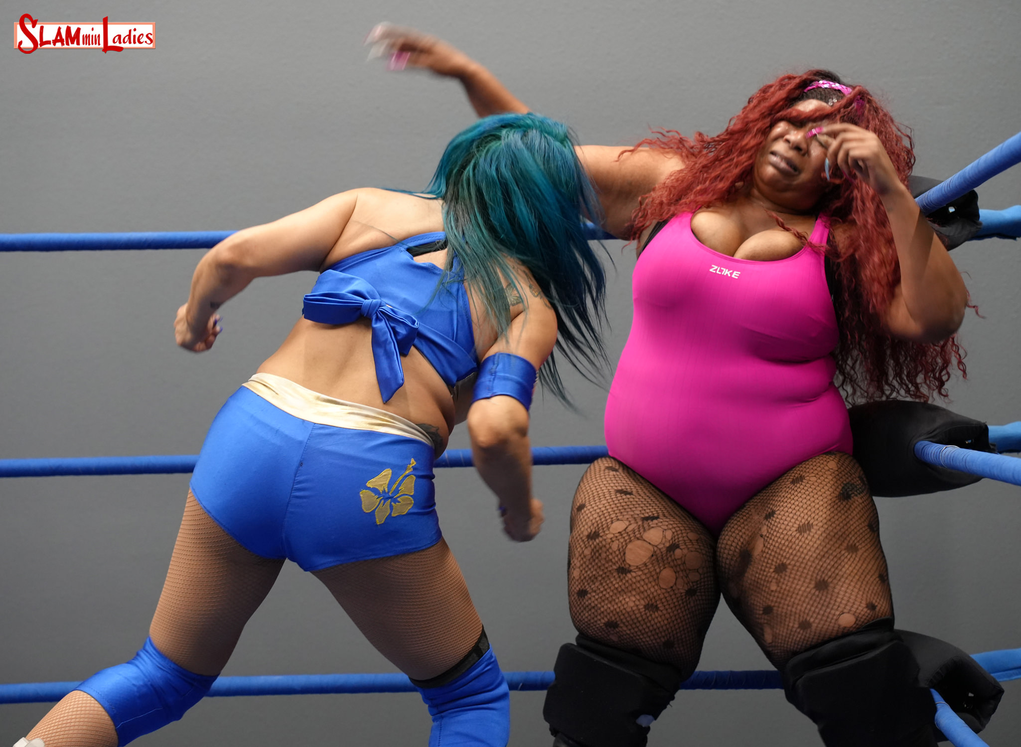 Tracy puts her speed and technical prowess on the line against the raw power of Roni. Deftly avoiding Roni’s early charges, Taylor applies an armbar into a Side Headlock. Roni squeezes on a Bearhug, but Tracy slips behind and turns off Roni’s lights with a Sleeperhold that leaves her out on the mat. As no arm drops are performed, the match continues as Roni slowly gets back to her feet. She avoids Tracy’s charge in the corner, then crunches Tracy with a splash in the corner, followed by giving Tracy a near view of her rear view. A shocking charging somersault splash into the corner leaves Tracy dazed, and after a splash and a sitdown splash, Tracy is motionless on the mat. Still, as no pinfall or arm drops are attempted, the match continues as Roni lifts Tracy back to her feet, but Tracy fires away with kicks and punches to the gut, and foot chokes and shoulderblocks in the corner. Tracy whips Roni across the ring, but again misses a charge, only to find herself on the receiving end of another running splash in the corner and another charging somersault splash. A few legdrops and a splash or two later, and it doesn’t matter if there’s a pinfall or tapout … it’s abundantly clear who is the winner in this matchup.