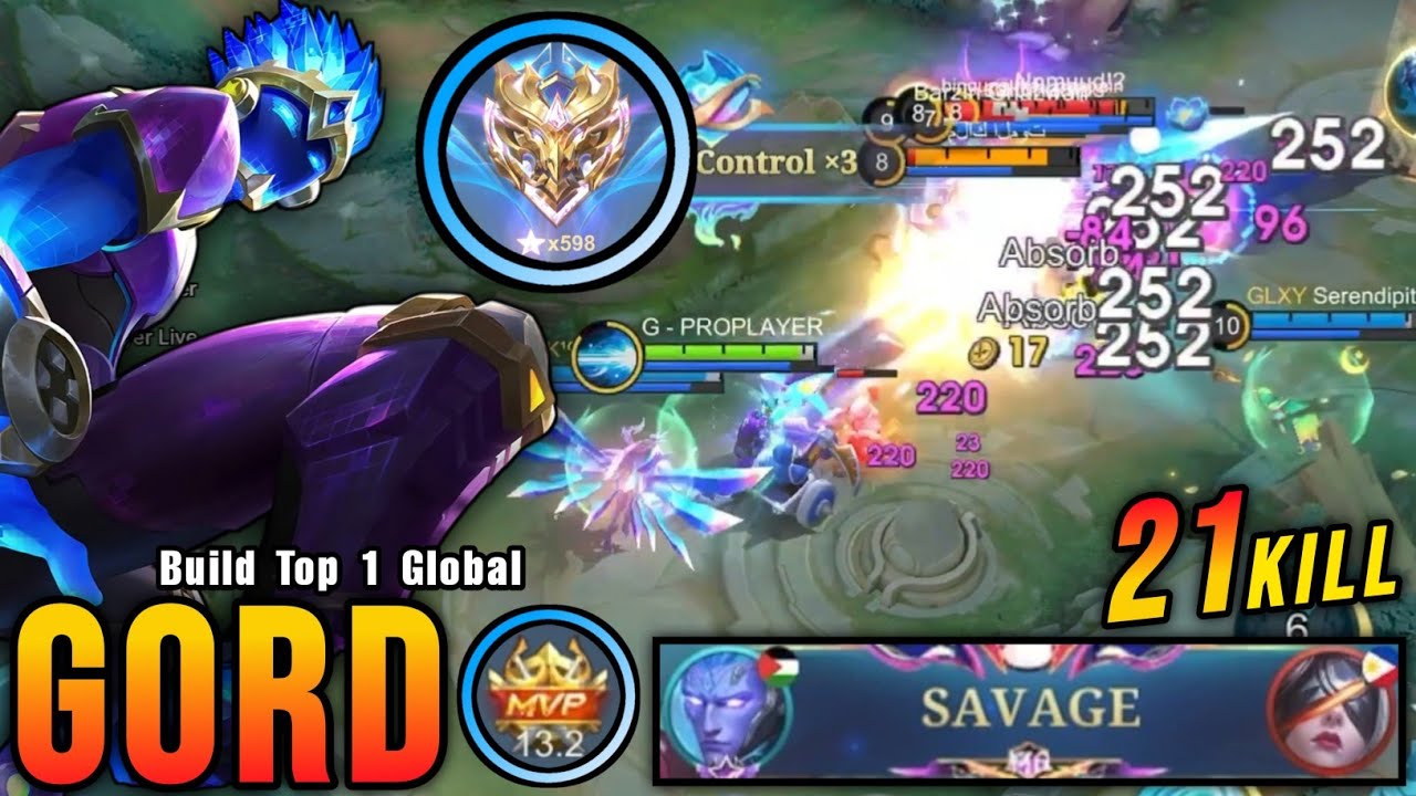 SAVAGE!! 21 Kills Gord Shutdown All The Enemies!! - Build Top 1 Global Gord ~ MLBB