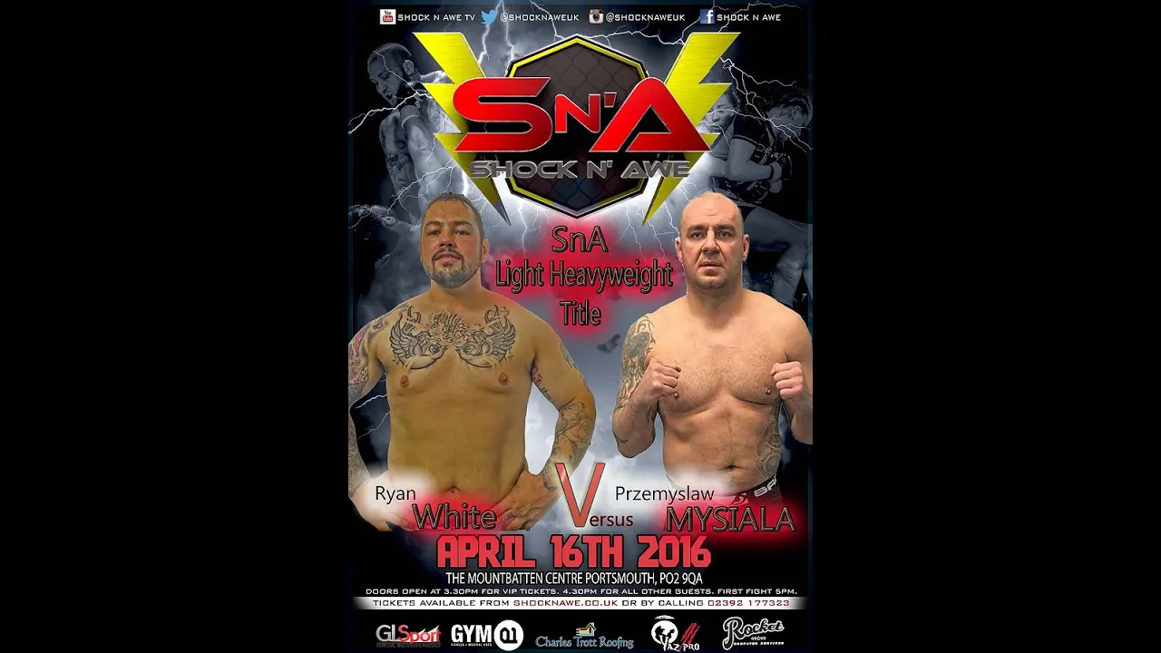 Two of the UK most experienced athletes are set to clash at Shock N Awe 22 April 16th in a rematch that is 10 years in the making. Przemyslaw "the polish bear" Mysiala take on Ryan "the great" White for the Heavyweight Shock N Awe world title - live on www.mmatv.co.uk action starts 5pm April 16th, dont miss it. Follow us on facebook: www.facebook.com/mmatvlive Follow us on twitter: www.twitter.com/mmatvlive Follow us on Instagram: www.instgram.com/mmatvlive Follow us on Google +: https://plus.google.com/+MmatvUk