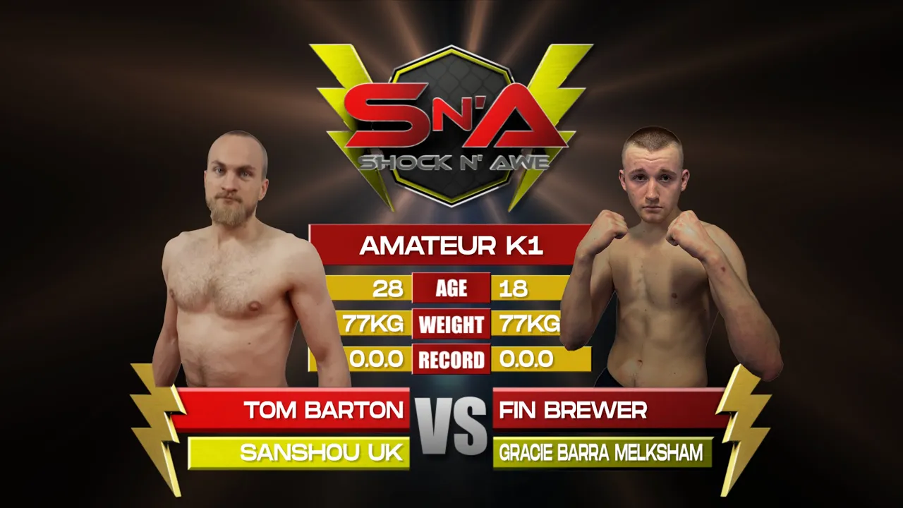 Shock N Awe 36 - Fin Brewer vs Tom Barton Welterweight 77kg Amateur K1 Kickboxing
