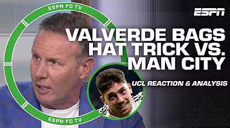 On ESPN FC, Dan Thomas is joined by Ale Moreno, Craig Burley and Jurgen Klinsmann to discuss their biggest takeaways from Real Madrid racing into a 3-0 lead in the first leg of their UEFA Champions League Round of 16 matchup against Manchester City, with Federico Valverde bagging a superb hat-trick. 0:00 Real Madrid take 3-0 advantage 3:35 Federico Valverde's hat trick 6:18 Real Madrid's chemistry 7:21 Manchester City's problems 12:52 Coverage on Erling Haaland 14:47 Man City lack continuity? 17:34 Erling Haaland's stats 19:37 Where Man City went wrong defensively 20:45 Should Haaland feel embarrassed? ✔️ Subscribe to ESPN Unlimited: https://plus.espn.com/ #ESPN #ESPNFC #championsleague #realmadrid #manchestercity