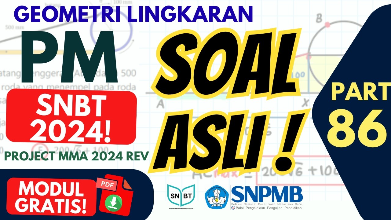 SOAL ASLI SNBT 2024 PM PENALARAN MATEMATIKA 🔥 GEOMETRI LINGKARAN (PART 86) Di video ini saya membahas soal asli SNBT 2024 dan SNBT 2025 pada materi Penalaran Matematika (PM) khusus geometri lingkaran, roda roda, luas, volume, putaran. Soal-soal ini telah disusun dan direvisi oleh Project MMA (Mangkuk Mie Ayam) sehingga lebih sistematis dan mudah dipahami. Pembahasan dilakukan sangat lengkap agar kamu benar-benar memahami konsep dan pola soal resmi SNBT. Materi yang dibahas: Sudut pada lingkaran ✅Roda roda & garis singgung ✅Juring , banyak putaran, katrol ✅Panjang busur & luas juring ✅Teorema penting dalam lingkaran ✅Strategi cepat & trik SNBT Video ini cocok untuk: ✅ Persiapan UTBK SNBT 2026 ✅ Menguasai PM Penalaran Matematika tanpa les ✅ Memahami tipe soal asli SNBT 2024 & 2025 ✅ Menguatkan konsep geometri secara menyeluruh Jika kamu serius ingin lolos SNBT 2026, tonton video ini sampai selesai karena pola soal seperti ini sangat mungkin muncul kembali. 📘 Download Modul MMA 2024: Subscribe agar tidak ketinggalan pembahasan soal SNBT terbaru lainnya. 🔥 Dukung channel ini agar terus upload pembahasan SNBT lengkap: Subscribe untuk pembahasan Try Out terbaru setiap minggu. #SNBT2026 #SoalAsliSNBT #PMSNBT #UTBK2026 #geometrisnbt Untuk diingat : "Diberkatilah orang yang mengandalkan Tuhan, yang menaruh harapannya pada Tuhan!" (Yeremia 17:7, TB)