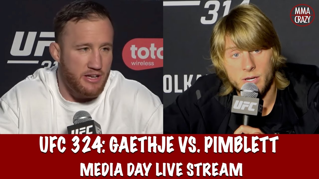 Watch the UFC 324: Gaethje vs. Pimblett Media Day Live Stream featuring Justin Gaethje, Paddy Pimblett, Sean O’Malley, Song Yadong, Waldo Cortes Acosta, Derrick Lewis, Natalia Silva, Rose Namajunas, Arnold Allen, Jean Silva, Umar Nurmagomedov, Deiveson Figueiredo #ufc324 #paddypimblett #justingaethje Twitter: http://www.twitter.com/MMACrazy Instagram: http://www.Instagram.com/MMA_Crazy Click on the link below to subscribe http://www.youtube.com/user/mmacrazytv?sub_confirmation=1