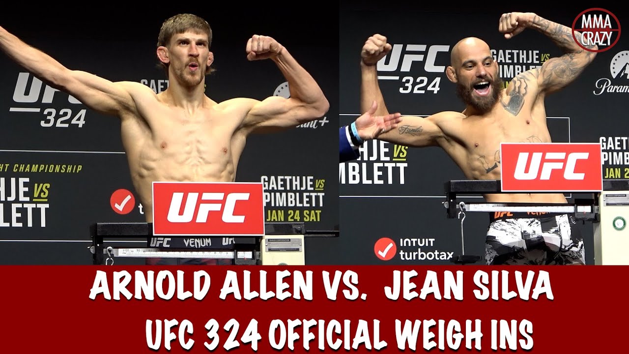 Arnold Allen & Jean Silva both weigh in for ufc 324 Twitter: http://www.twitter.com/MMACrazy Instagram: http://www.Instagram.com/MMA_Crazy Click on the link below to subscribe http://www.youtube.com/user/mmacrazytv?sub_confirmation=1