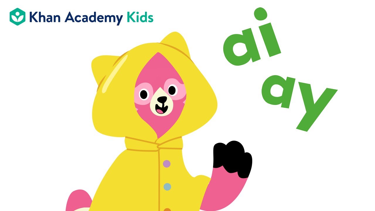 Rainy days are good days to practice letters! The letters "a" and "y" team up to make the long /ā/ sound. The letters "a" and "i" team up to make the long /ā/ sound too. Learn about vowel teams with Reya the Red Panda from Khan Academy Kids. Visit us at to learn more about Khan Academy Kids, a free educational app for preschool through 2nd grade. Available on Google Play, Apple, and Amazon app stores: ➡️ ➡️ ➡️ You can access other videos about vowel teams on our playlist here: Subscribe to our channel for more videos like this.