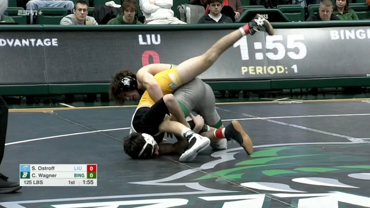2025/26 Binghamton vs Long Island wrestling dual 133lbs Dillon Arrick (BING) dec Jared Chuquilin (LIU)