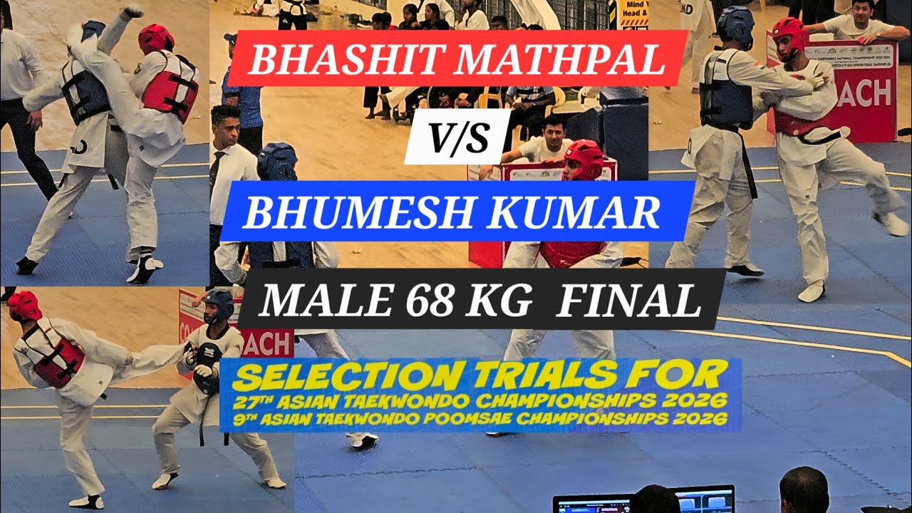 Watch an intense 68kg Taekwondo Final match between Bhashit Mathpal and Bhumesh Kumar from the Selection Trials for Asian Championships 2026. This fight showcases high-level skills, speed, and powerful kicks in competitive Taekwondo. Recorded live with real match moments and action highlights. 👉 Don’t forget to Like, Share & Subscribe for more Taekwondo fights and slow-motion analysis. #Taekwondo #TaekwondoFight #68kgFinal #MartialArts #KickFight #SportsHighlights #IndiaTaekwondo #FightAnalysis taekwondo fight 68kg taekwondo final taekwondo india bhashit mathpal bhumesh kumar taekwondo match 2026 selection trials taekwondo martial arts fight taekwondo kicks head kick taekwondo sports fight video taekwondo highlights indian taekwondo fight