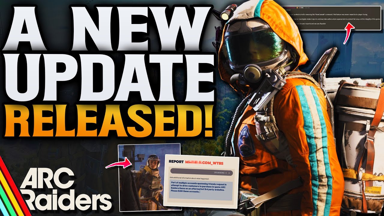 Raiders, we are back with crucial gaming news! This arc raiders update covers a brand new hotfix, removing a console command that should resolve many PC issues, and we also look at recent changes on SteamDB. We'll also discuss how a removed trailer and a lingering screenshot might be hinting at new maps. Stay tuned for more gaming tips and arc raiders news! ⭐ Our Subreddit: https://www.reddit.com/r/CloudPlays/ 🔴 Twitch: https://www.twitch.tv/cloudplays_yt ❤️ Second Channel: https://www.youtube.com/@Cloudclipyt 🧼Cheeky Soap: https://usecheeky.com/?ref=CLOUDPLAYS 🥤 Gamersupps: https://gamersupps.gg/Cloudplays 💻 Instant Gaming : https://www.instant-gaming.com/?igr=gamer-1546f6a 💬Discord: https://discord.gg/M67vZnqKuG 📸Instagram: https://www.instagram.com/cloudplaysyt/ 🐦Twitter: https://mobile.twitter.com/Cloudplays_yt 🎥My Tiktok: https://www.tiktok.com/@cloudplays_yt 👕NEW MERCH! : https://cloudplays.creator-spring.com/listing/mental-cloud ☁️Become a member on the channel now!:https://www.youtube.com/channel/UC8D47Pv6mdRHgzIzxsy-q3w/join Chapters 0:00 What's to come 1:15 Dev console issue fixed 3:00 They deleted alot?! 3:52 Rmt sites are in game now! 4:42 New volcano map?! 6:33 Top players 9:26 Thank you ARC Raiders is an multiplayer, extraction adventure, set in a lethal future earth, ravaged by a mysterious mechanized threat known as ARC.In ARC Raiders, gameplay flows between the surface ruled by lethal machines, and the vibrant underground society of Speranza. Craft, repair, and upgrade your gear in the safety of your own workshop, before venturing topside to scavenge the remnants of a devastated but beautiful world. Play solo or in parties up to three, navigating the constant threat of ARC's machines and the unpredictable choices of fellow survivors. #ARCRaiders #ARCRaidersnews #ARCRaidersupdate