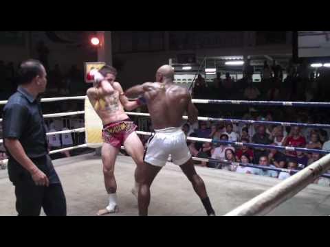 Cyrus Washington fighting out of Tiger Muay Thai & MMA Training Camp, Phuket, Thailand, scores a 1st round knock out in a rematch fight against rising Muay Thai Star Harlee Por Pramuk winning the Pk-1 Championship Belt at Patong Boxing Stadium on February 22, 2010. http://www.tigermuaythai.com