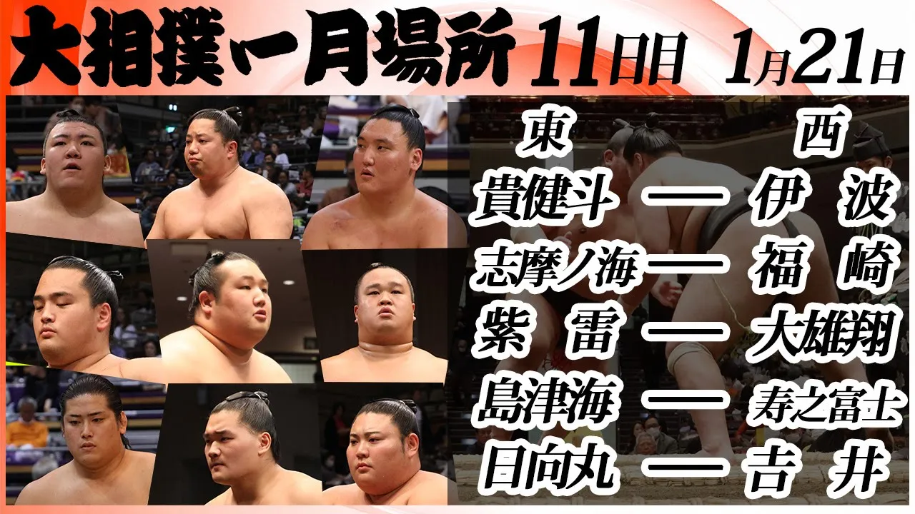 令和8年一月場所 取組順 貴健斗ー伊波 志摩ノ海ー福崎 紫雷ー大雄翔 島津海ー寿之富士 日向丸ー𠮷井 今場所も宜しくお願い致します! 一緒に大相撲を盛り上げましょう! 🎦おすすめ人気動画リスト <相撲好き必見!>相撲部屋稽古特集 ∟https://www.youtube.com/playlist?list=PLGbh7k1KcL3kdjK_VNfjLWLXIQnLe_ore <全取組公開>活躍した力士の全取組を完全収録! ∟https://www.youtube.com/playlist?list=PLGbh7k1KcL3nEkxC0lGfP_jdiNd2JpKOj 握力横綱〈握力NO.1関取は誰だ!?〉 ∟https://youtu.be/iw20sVujqIo ラーメン二郎とちゃんこ鍋・禁断のコラボ ∟https://youtu.be/3Wzwxpyv4Jk お相撲さんの場所入り<令和7年五月場所・定点企画>SUMO └https://youtu.be/KCVWxrTZ7lA ___________________________ 🤗おすすめ再生リスト 本場所・取組 ∟https://youtube.com/playlist?list=PLGbh7k1KcL3lhFq5rx4BK4XjuoSQMfo48 大相撲ゴルフ企画 ∟https://youtube.com/playlist?list=PLGbh7k1KcL3lZf1PMrjR8lqGJu8iaqk9q 相撲部屋(朝稽古) ∟https://youtube.com/playlist?list=PLGbh7k1KcL3kdjK_VNfjLWLXIQnLe_ore 人気動画切り抜きまとめ ∟https://youtube.com/playlist?list=PLGbh7k1KcL3lMjn-AckTj7Smr6R0jUqsk 【アーカイブ場所】初日無料! ∟https://youtube.com/playlist?list=PLGbh7k1KcL3kgzLvhiz4tBF1sQhFnYukI 親方ちゃんねる(対談、インタビューも) ∟https://youtube.com/playlist?list=PLGbh7k1KcL3nbFptlOMrnOuv0X98orxbH ___________________________ #相撲 #幕下 #sumo ___________________________