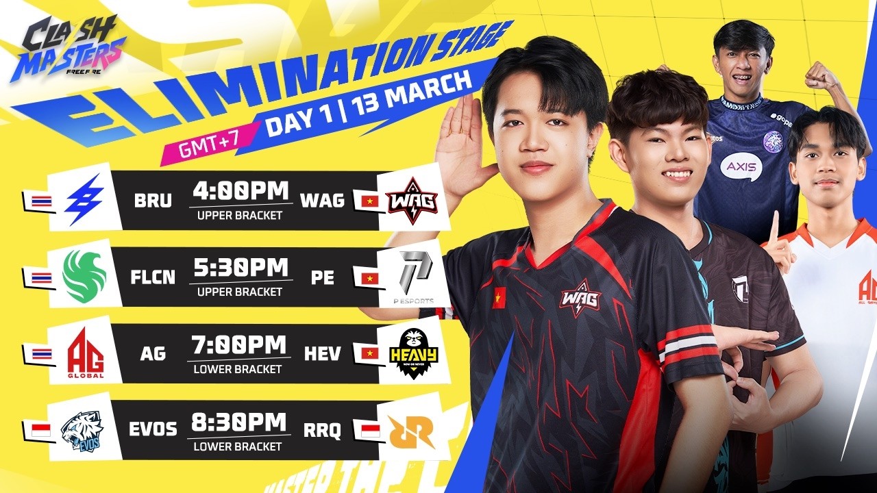 [EN] Elimination Stage Day 1 | Free Fire Clash Masters SEA 2026 Spring 🔥 Master The Clash The Elimination Stage begins! Day 1 features a regional showdown as all Thai teams face off against Vietnamese contenders, while Indonesia’s EVOS Divine and RRQ Kazu battle to stay alive in the tournament. Only the strongest will advance. 🕓 Live at 04:00 PM (GMT+7) Upper Bracket: Match 1: 🇹🇭Buriram United Esports vs 🇻🇳WAG Match 2: 🇹🇭Team Falcons vs 🇻🇳P Esports Lower Bracket: Match 3: 🇹🇭All Gamers Global vs 🇻🇳Heavy Match 4: 🇮🇩EVOS Divine vs 🇮🇩RRQ Kazu 📅 Group Stage: 6 - 8 March 2026 📅 Elimination Stage: 13 - 14 March 2026 📅 Semi & Grand Finals: 15 March 2026 #MASTERTHECLASH #FFCMSEA2026 #FFCMSEA2026SPRING #FreeFireEsports