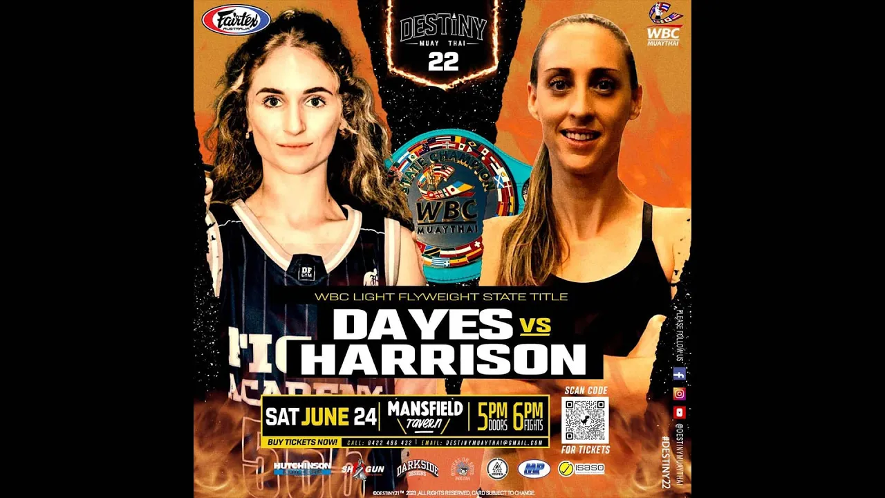 WBC QLD State Title Destiny Muaythai 22 24th June 2023 Brisbane, Australia Subscribe to our YouTube - https://bit.ly/AusMuayThai-YouTube Facebook: https://www.facebook.com/ausmuaythai Instagram: https://www.instagram.com/ausmuaythai #ausmuaythai #hannahdayes #rachelleharrison #wbcmuaythai #destinymuaythai #muaythai #thaiboxing