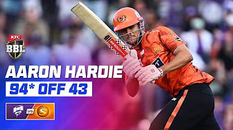 Aaron Hardie combined with Mitch Marsh for a 164 run partnership and finished with 94* from just 43 balls. 📲 Download the Big Bash App for everything Big Bash all in one place. https://bigba.sh/App