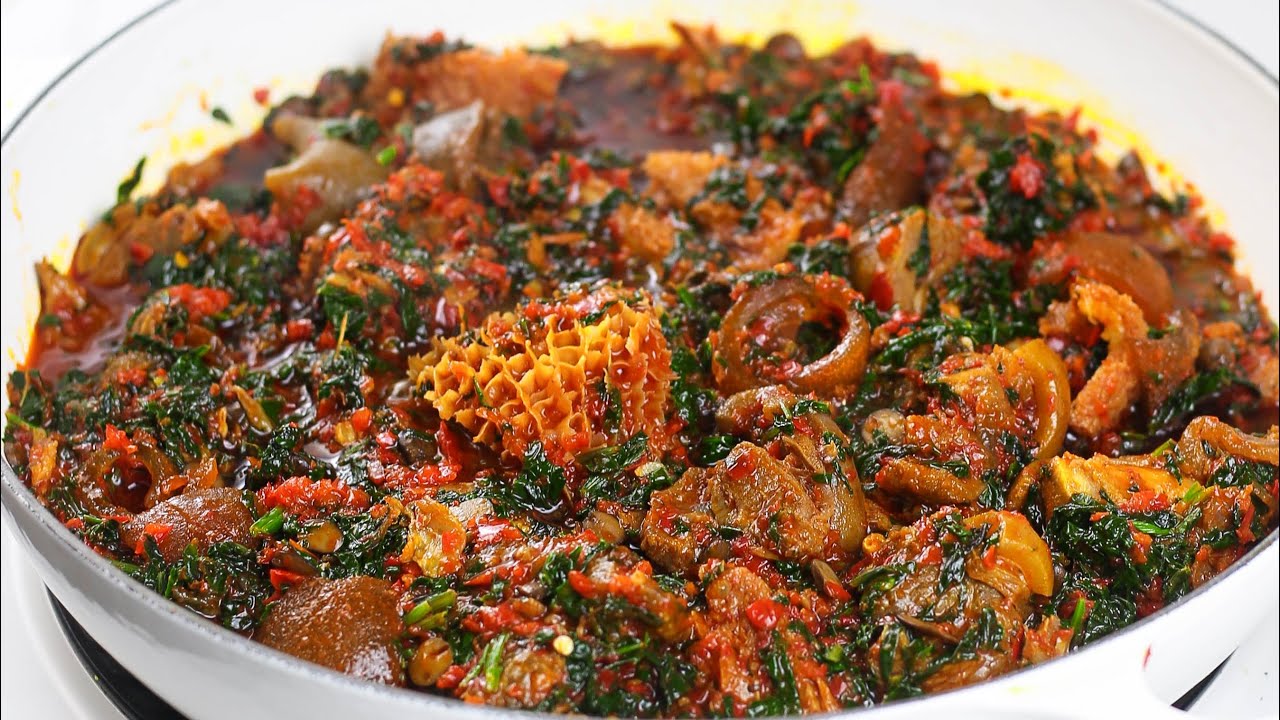 2kg Goat meat or beef(Goat meat works best) 1 kg beef( flanken style ribs) 2 cups water ½ kg shaki and kpomo 2 knorr beef cube to season beef 1 teaspoon salt Handful of chopped onion Smoked fish Stock fish flakes(soaked in hot water for 1 hour) 2 bunch fresh Efo shoko or spinach Pepper mix 3 medium bell Peppers 4-5 scotch bonnet pepper(add according to heat tolerance) ½ cup palm oil Handful of chopped onion 2 tablespoons iru 2 tablespoons crayfish Seeds from @jollofcode on instagram Pots: https://ap.carawayhome.com/kikifoodiesnp Blender: https://www.amazon.com/shop/kikifoodies #eforiro #nigerianfood #vegetablesoup #nigeriansoup