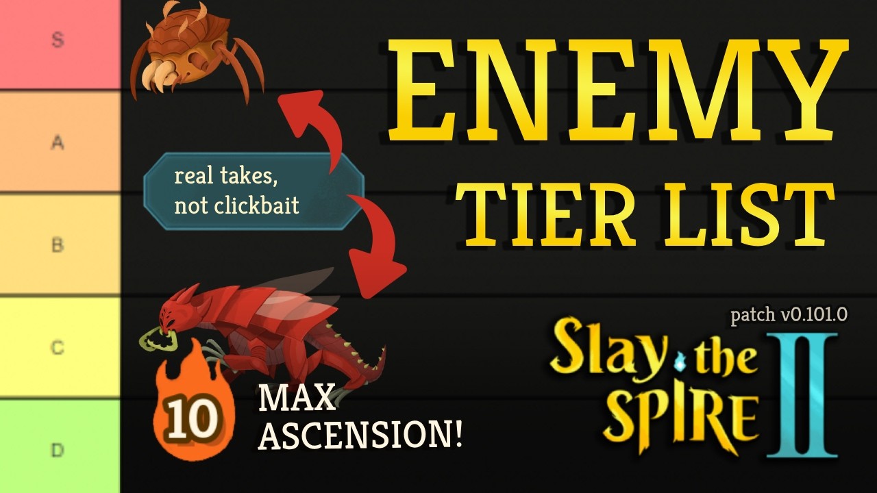 #slaythespire2 Hi-res tier lists: Act 1a - Overgrowth: https://tiermaker.com/list/video-games/act-1a---overgrowth-combats-slay-the-spire-ii-v01010-19230513-2/6088076 Act 1b - Underdocks: https://tiermaker.com/list/video-games/act-1b---underdocks-combats-slay-the-spire-ii--19230513/6088074 Act 2 - The Hive: https://tiermaker.com/list/video-games/act--2---hive-combats-slay-the-spire-ii-19230513/6088077 Act 3 - Glory: https://tiermaker.com/list/video-games/act-3---glory-combats-slay-the-spire-ii-19230513/6088079 0:00:00 - Intro 0:01:18 - Overgrowth Easy Pool 0:04:01 - Overgrowth Hard Pool 0:15:52 - Overgrowth Elites 0:19:46 - Overgrowth Bosses 0:24:54 - Overgrowth Recap 0:25:35 - Underdocks Easy Pool 0:29:35 - Underdocks Hard Pool 0:38:58 - Underdocks Elites 0:43:05 - Underdocks Bosses 0:48:15 - Underdocks Recap 0:48:37 - Act 2 Easy Pool 0:52:39 - Act 2 Hard Pool 1:03:10 - Act 2 Elites 1:07:00 - Act 2 Bosses 1:11:29 - Act 3 Easy Pool 1:14:45 - Act 3 Hard Pool 1:22:57 - Act 3 Elites 1:25:49 - Act 3 Bosses 1:31:23 - Act 3 Recap 1:33:14 - Overall Recap If you liked the video, please consider subscribing to support me, the editing team, and to make sure you don't miss future uploads! You may also follow me here to catch livestreams and other updates: Twitch: (https://www.twitch.tv/JapaneseExport) Twitter: (https://twitter.com/JapaneseExport) Discord: (https://discord.gg/cKGwFpU5cv) Video editing & thumbnail by: (https://www.youtube.com/@Asukii314)