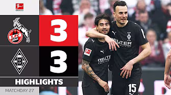 1. FC Köln vs. Borussia Mönchengladbach – Highlights from Matchday 27! ► Sub now: https://redirect.bundesliga.com/_bwCS Watch the Bundesliga highlights of 1. FC Köln vs. Borussia Mönchengladbach from Matchday 27 of the 2025/26 season! Goals: 0-1 Castrop (1'), 1-1 El Mala (4'), 2-1 Ache (7'), 2-2 Sander (20'), 2-3 Castrop (60'), 3-3 Martel (84') ► Watch Bundesliga in your country: https://redirect.bundesliga.com/Bunde... ► Join the conversation in the Bundesliga Community Tab: https://www.youtube.com/bundesliga/co... We’ve seen another Matchday full of unmissable Bundesliga drama. Don’t miss any highlights from Germany’s football league! The Official Bundesliga YouTube channel gives you access to videos about the greatest goals, best moments and anything else you should know about. Make sure to subscribe now and visit us at https://bndsl.ga/comYT to find out more about the fixtures, analysis and news about your favourite team!