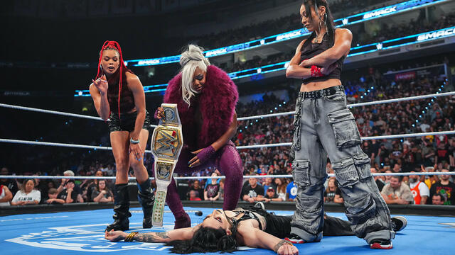 Michin and B-Fab seemingly join forces with WWE Women’s Champion Jade Cargill by beating down Rhea Ripley. Catch WWE action on the ESPN App, Netflix, USA Network, CW Network, Peacock and more.