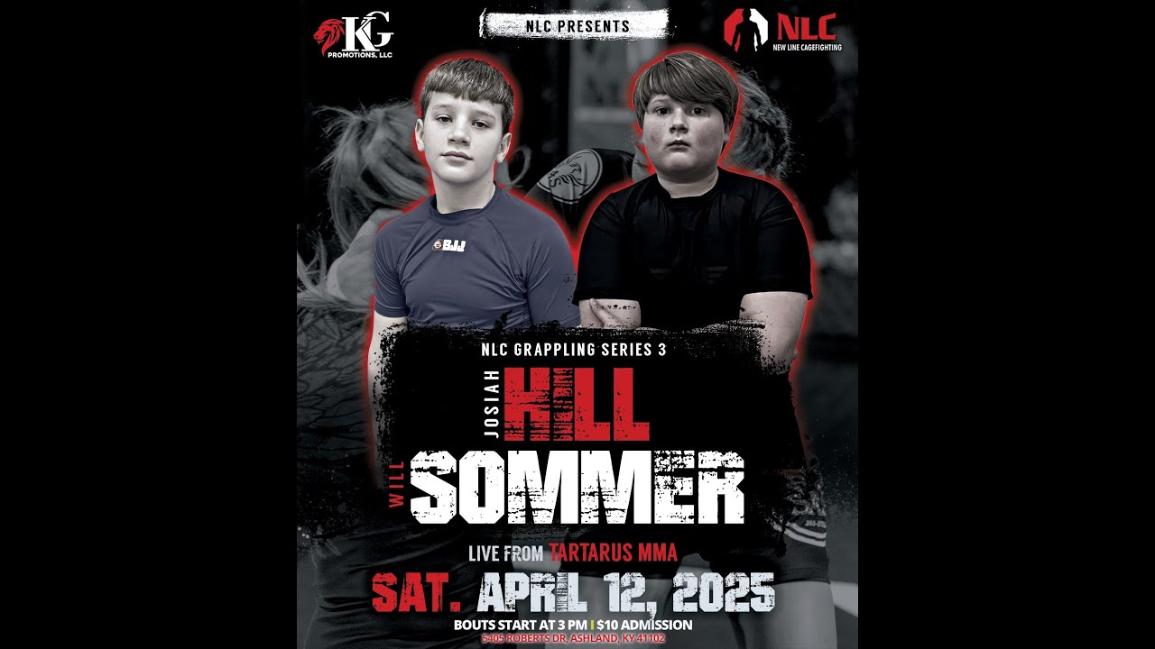 NLC Grappling Series 3 April 12, 2025 Live from Tartarus MMA in Ashland, KY Bout #9 Josiah Hill (2-0) of Category Five Jiu Jitsu meets newcomer William Sommer of One Academy in a Youth BJJ Matchup! Join this channel to get access to perks: https://www.youtube.com/channel/UCZoxYen5PGFcOFxW5znMJnw/join
