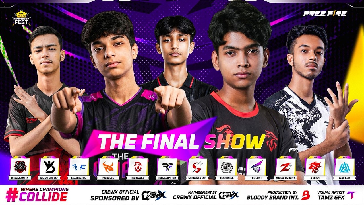 Welcome to "CREWX CHAMPIONSHIP FEST'' GRAND FINALE !! Top 12 teams are battling it out for glory. Which squad will dominate? āļø āø» š PLAYING TEAMS :- - REDHAWKS - ā ZODIAC ESPORTS - ā BANGLA UNITY - ā REFLEX UNITED - ā NO RULES - ā THE GOAT - ā WAR GOD - ā LK ELECTRO - ā TEAM RAGE - ā DICTATORS ESP - ā X REIGN - ā SHADOW X ESP āø» š® MATCH DETAILS ( 8 MATCHES ) š CHAMPION RUSH āø» šŗ Stay tuned, like the stream & subscribe for more esports action! šÆ š Donāt miss a single match of CREWX CHAMPIONSHIP FEST.