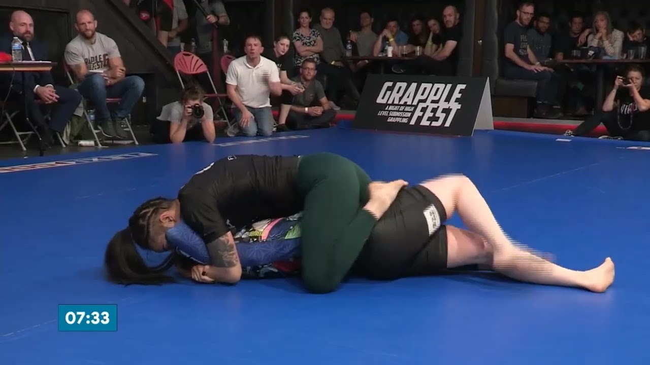 Woman Dominates Man in Grappling Hold