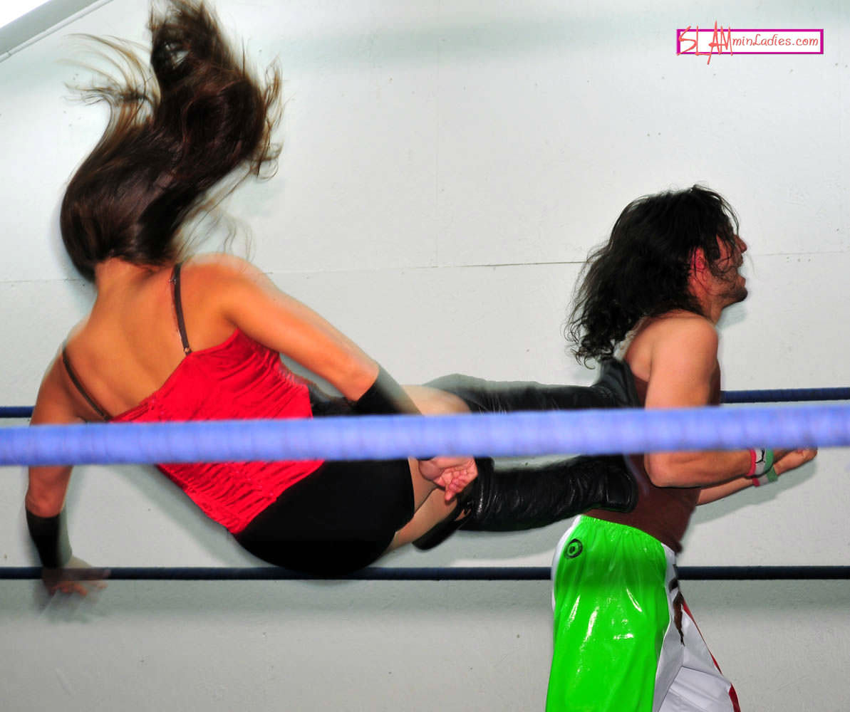 Dejo barely mounts a single offensive maneuver as Malia easily picks up the First Fall. First working over his arms with armbars and knee and elbow strikes, Malia locks in a double reverse Hammerlock. Then she gets nasty, hitting Ben with Headbutts, Bodyslams and Dropkicks, then gets Ben to scream his submission while trapped in an Octopus Hold. Malia continues the assault in the Second Fall, taunting Ben while hitting him with Anklelocks, leg sweep takedowns, Surfboards, Step-over Toeholds and legscissors. Malia sets Ben up with a powerful Suplex, then wraps on a Figure Four Leglock for the submission and the Second Fall. Thinking the match is over, Ben vents his frustration by telling Malia how he feels about her. Unfortunately, his mouth has just written a check his backside can't cash and Malia picks him apart in a Third Fall that leaves Ben out cold on the mat after taking a Bulldog, Pedigree and Sleeperhold. Maybe next time, Ben will be more gracious in defeat.