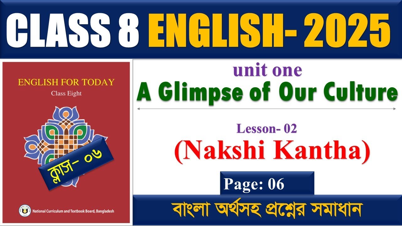 Part-4। Class 8 English 1st Paper Unit 1 Lesson 2। class 8 english chapter 1 2025। Part-3। Class 8 English 1st Paper Unit 1 Lesson 1। class 8 english chapter 1 2025। ------------------------------------------------------------- Related Keywords: class 8 english 1st paper unit 1 lesson 1, a glimpse of our culture class 8 a glimpse of our culture class 8 english book 2025 lesson 2 class 8 english book 2025 page 4-5 Nakshi Kantha class 8 a glimpse of our culture class 8 class 8 english 1st paper 2025 class 8 english new book 2025 class 8 english book 2025 class 8 english book page 4 class 8 english chapter 1 2025 class 8 english chapter 1 class 8 english page 1 class 8 english page 2 class 8 english unit 1 2025 class 8 english unit 1 class 8 Nakshi Kantha ----------------------------------------------------------------------------------------- নাতি নাতনির পাঠশালার অন্যান্য চ্যানেল: 1. জিরো রহস্য: https://youtube.com/@rr_raj23?si=QJtZUo6UKNPxESlt 2. RR Raj Gym Status: https://youtube.com