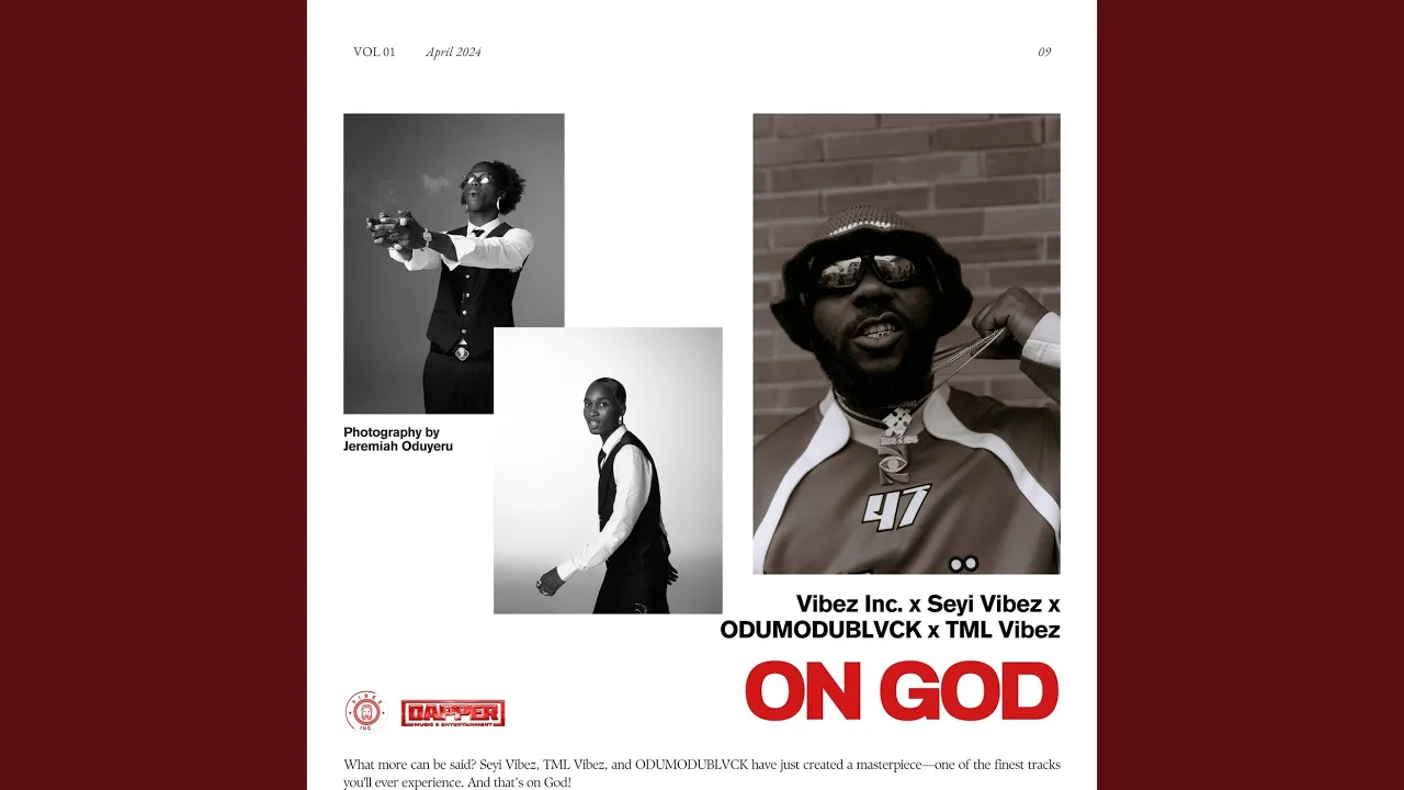 Provided to YouTube by Virgin Music Group On God · Seyi Vibez · Tml Vibez · Odumodublvck On God ℗ 2024 Vibez Inc / Dapper Music & Ent, Under exclusive license to Dvpper Digital Ltd. Released on: 2024-05-08 Composer, Writer: Balogun Afolabi Oluwaloseyi Composer, Writer: Tochukwu Gbubemi Ojogwu Composer, Writer: Timileyin Sulaimon Auto-generated by YouTube.