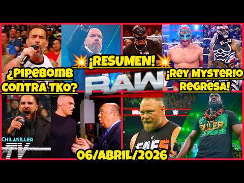#wwe #wweraw #cmpunk #reymysterio #tripleh #brocklesnar SUSCRIBETE PARA MÁS CONTENIDO Y APÓYANOS DÁNDOLE LIKE ¡PIPEBOMB CONTRA TKO! | WWE RAW | 6 Abril 2026 | RESUMEN Y RESULTADOS Contacto ► chtvcontacto@gmail.com Apoyame uniendote al canal ► Paypal ► Canal Secundario ► Facebook ► Facebook Secundario ► Twitter ► Instagram ► TikTok ► FAIR USE. En virtud de la sección 107 de la Ley de Derecho de Autor de 1976, se permite el "uso justo" para fines tales como crítica, comentario, informes de noticias, enseñanza, becas, educación e investigación. El uso justo es un uso permitido por el estatuto de derechos de autor que de otro modo podría estar infringiendo. Algunas partes del material visual de este video no son de mi autoría. Todos los derechos y créditos pertenecen a sus legítimos propietarios. --------------------------------------------------------------------------------- Tags: wwe,wwe raw,wwe raw resumen,wwe raw resultados,wwe raw 6 abril 2026 resumen,wwe raw review,wwe raw 6 abril 2026 resultados,wwe raw 6 abril 2026 review,wwe raw 6 abril,wwe raw 6 abril resumen,chilakiller tv,wwe wrestlemania 42,cm punk,roman reigns,triple h,tko,brock lesnar,oba femi,paul heyman,seth rollins,gunther,rey mysterio,penta,los americanos,aj lee,becky lynch,iyo sky,rhea ripley,jade cargill,finn balor,liv morgan,stephanie vaquer,aew WWE, WWE RAW, WWE SmackDown, WWE NXT, Resumen WWE RAW, Resumen WWE SmackDown, Resumen WWE NXT, Resumen Completo WWE RAW, Resumen Completo WWE SmackDown, Resumen Completo WWE NXT, Resultados WWE RAW, Resultados WWE SmackDown, Resultados WWE NXT, WWE RAW Results, WWE SmackDown Results, WWE NXT Results, WWE RAW Analisis, WWE SmackDown Analisis, WWE NXT Analisis, WWE RAW Highlights, WWE SmackDown Highlights, WWE NXT Highlights, WWE Resumen, WWE Resultados, WWE Review, WWE Analisis, WWE Highlights, WWE Results, WWE en vivo, WWE Live, AEW, All Elite Wrestling, AEW Dynamite, AEW Rampage, AEW Collision, Resumen AEW Dynamite, Resumen AEW Rampage, Resumen AEW Collision, Resumen Completo AEW Dynamite, Resumen Comp